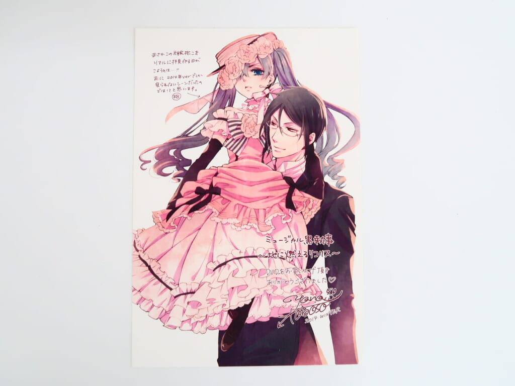 『ミュージカル黒執事 地に燃えるリコリス』アニメイト限定版特典・枢やな先生描き下ろしメッセージポストカードです💌